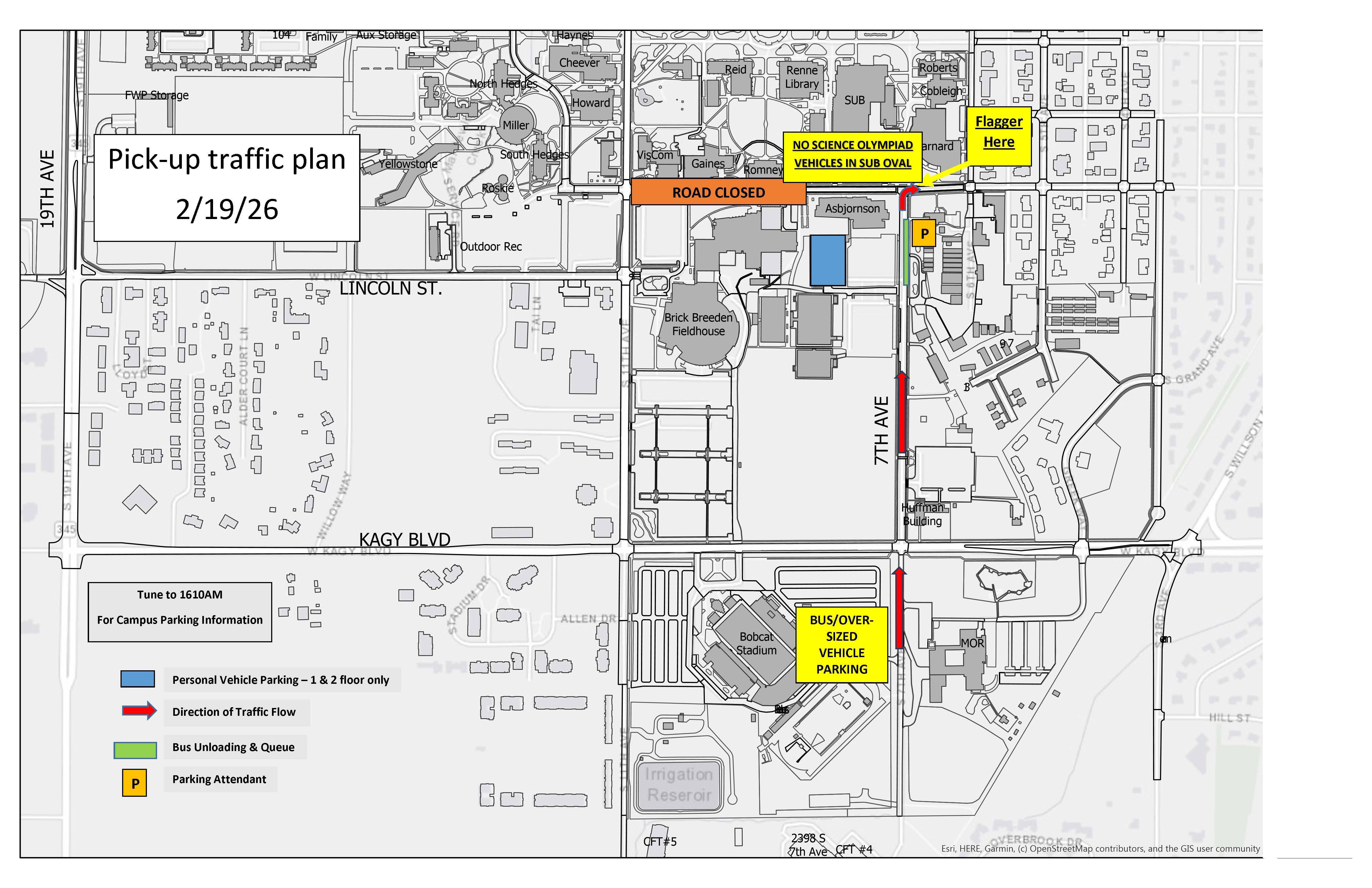 - Unloading will occur along South 7th and in the SUB Oval.